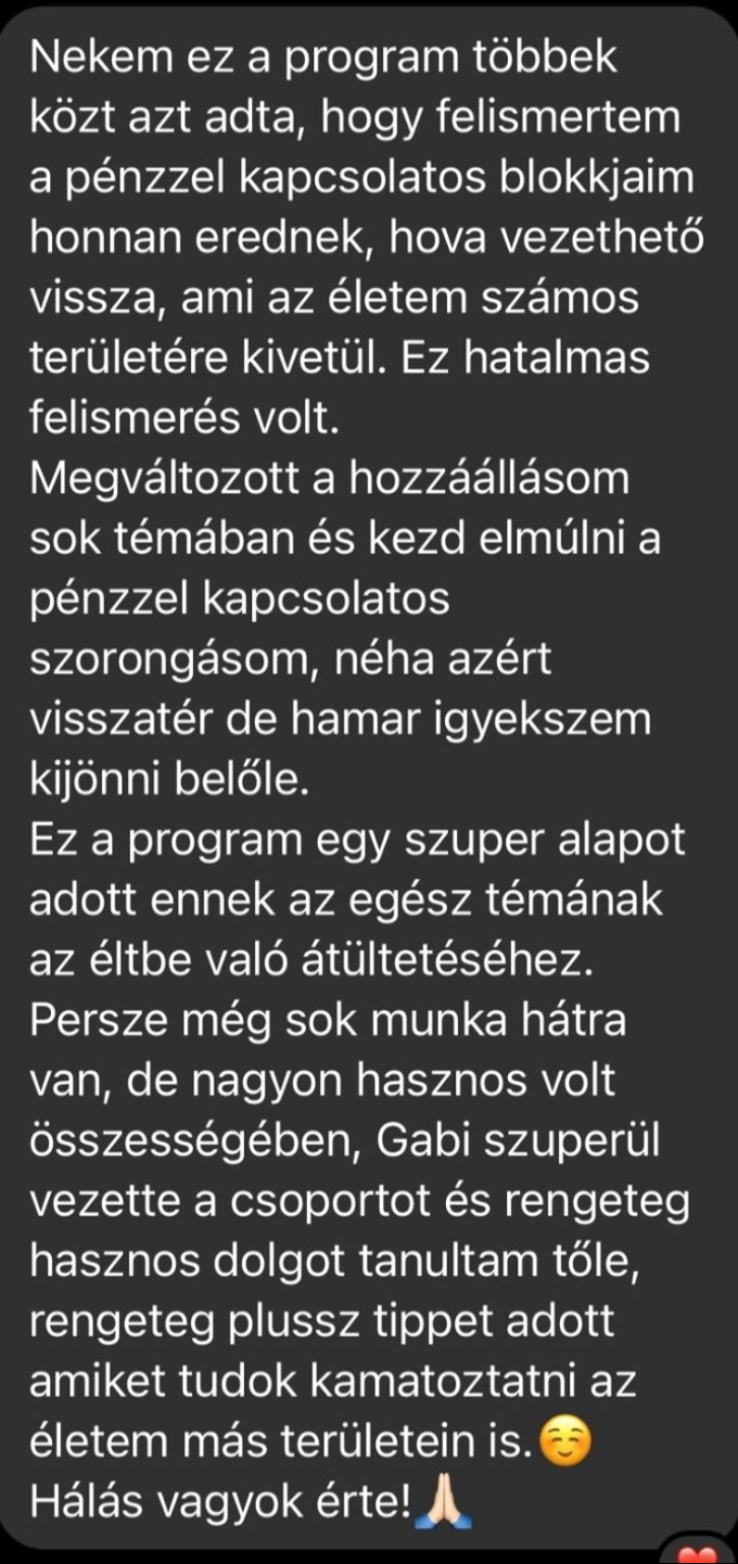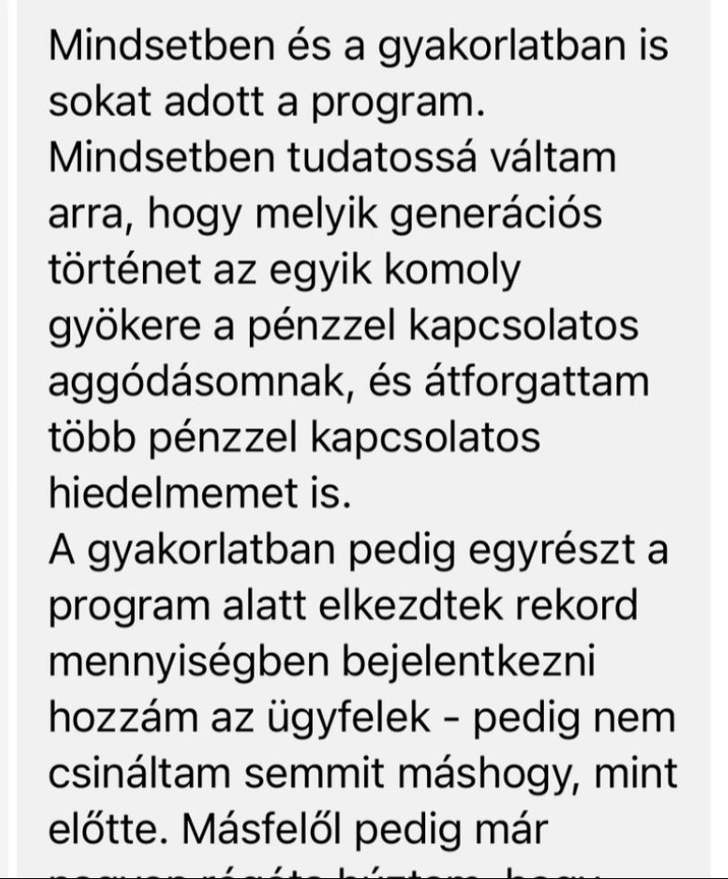 90-120 perces intenzív alkalmak során feltárjuk és felülírjuk azokat a tudattalan korlátozó sémáidat, programjaidat és hitrendszereidet, amik gátolnak a bőség elérésében, megnehezítik a pénzteremtést és annak a szabad életnek az elérését, amire a lelked mélyén vágysz.