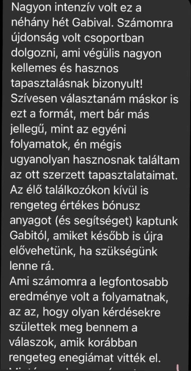 Ezeken az alkalmakon bár egyszerre dolgozik a csoport minden tagja a vezetővel, mégis a saját folyamatoddal haladsz egyénileg.