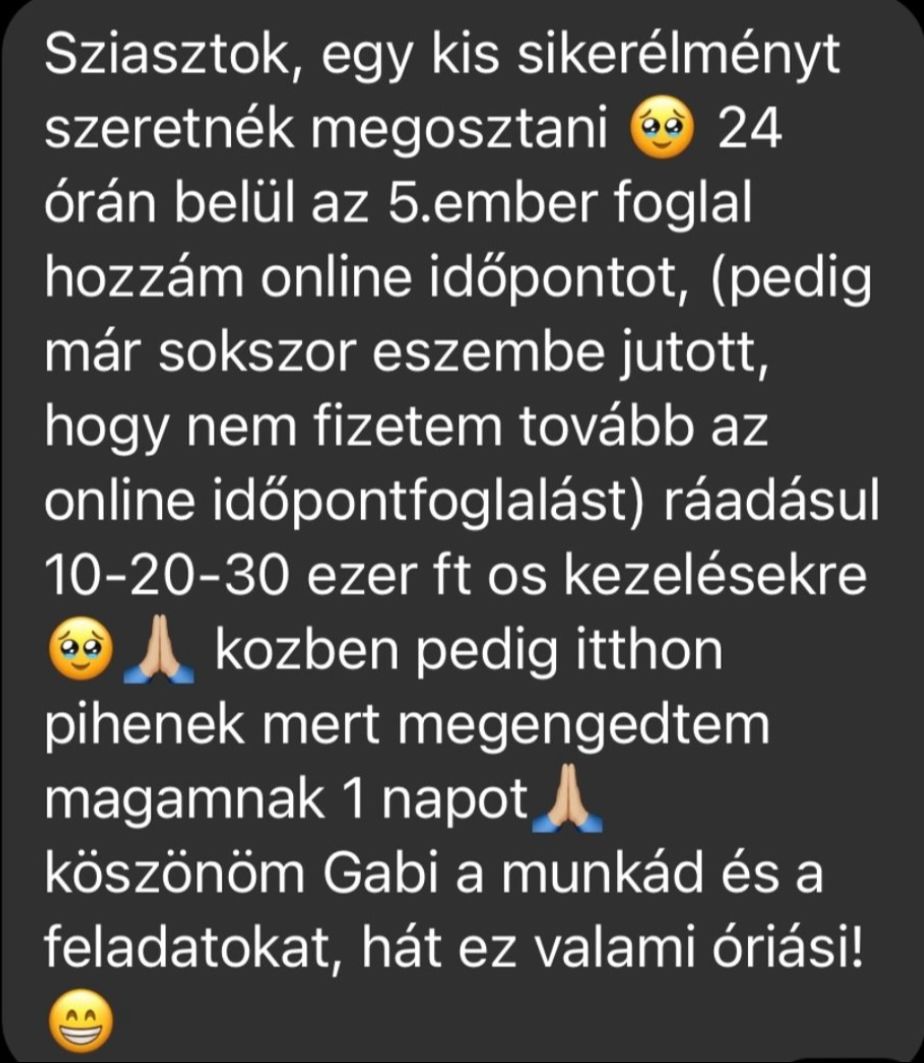 Minden alkalom után azt érezheted majd, hogy mázsás súlyokat engedtél el, felszabadultabb és magabiztosabb vagy.